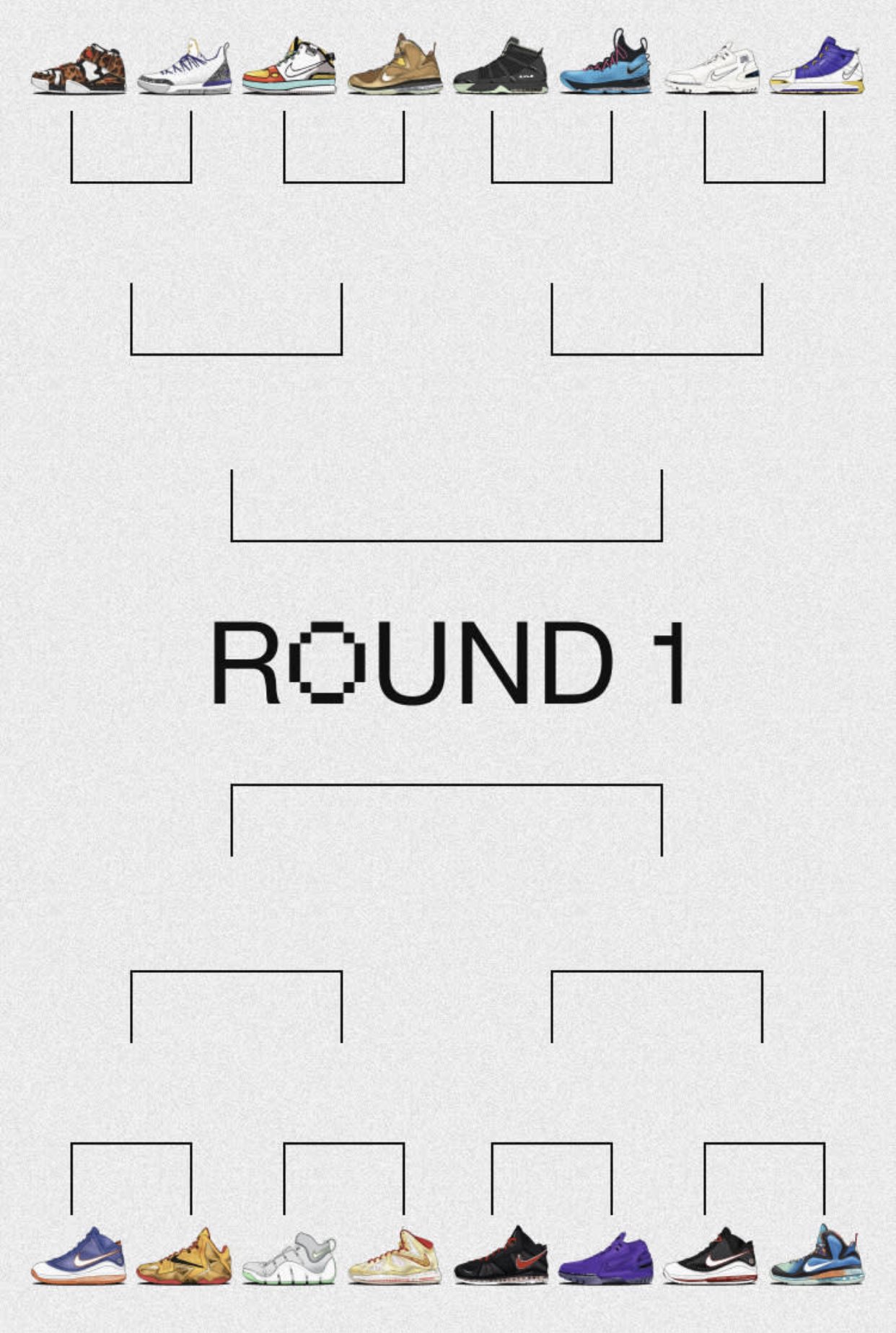 “由勒布朗从他的18代签名球鞋产品线中亲自挑选出的16款球员版球鞋将组成四轮对阵,但只有一个鞋款将荣膺票选第一,并在未来得到发售。现在就投票吧,敬请期待第2轮。”耐克官方写道。