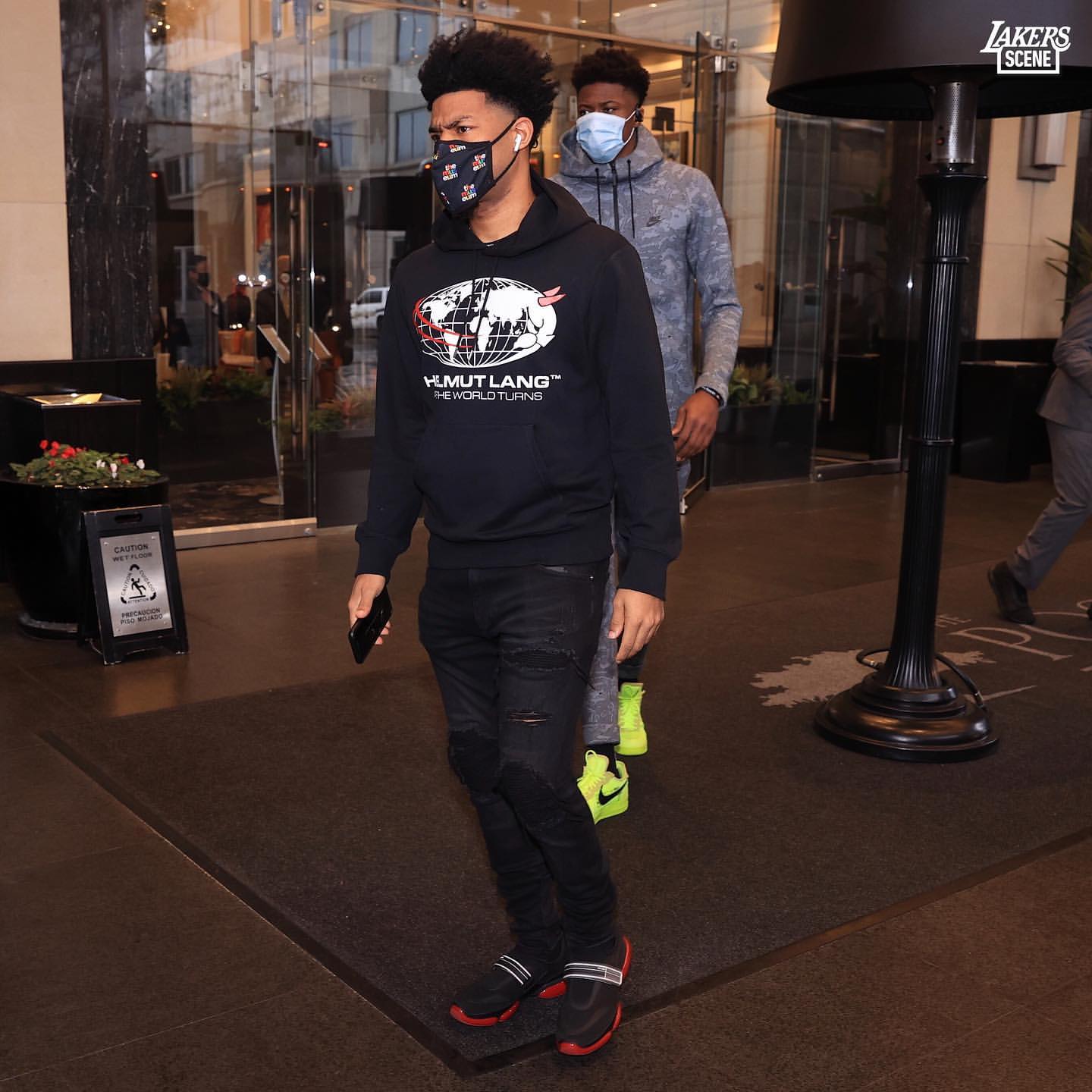 博球00701月11日讯 湖人官方Instagram媒体账号今日发布了勒布朗-詹姆斯等球员离开下榻酒店出发前往火箭主场球馆的一组照片。