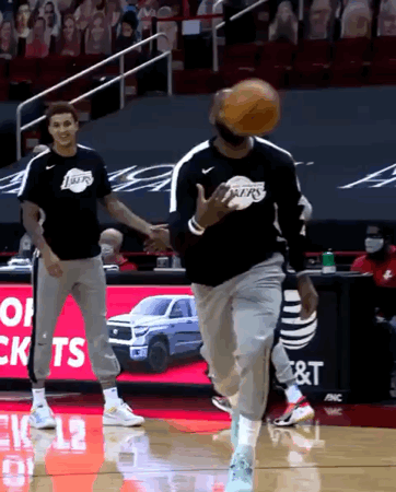 今日,湖人前锋勒布朗-詹姆斯更新Instagram Story,转发自己在昨日赛前热身中为火箭主场观众表演的一次自抛自扣。