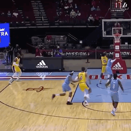 在比赛的第二节,湖人前锋勒布朗-詹姆斯底角三分出手之后直接自信转身与板凳席的队友互动,而篮球随后应声入网。