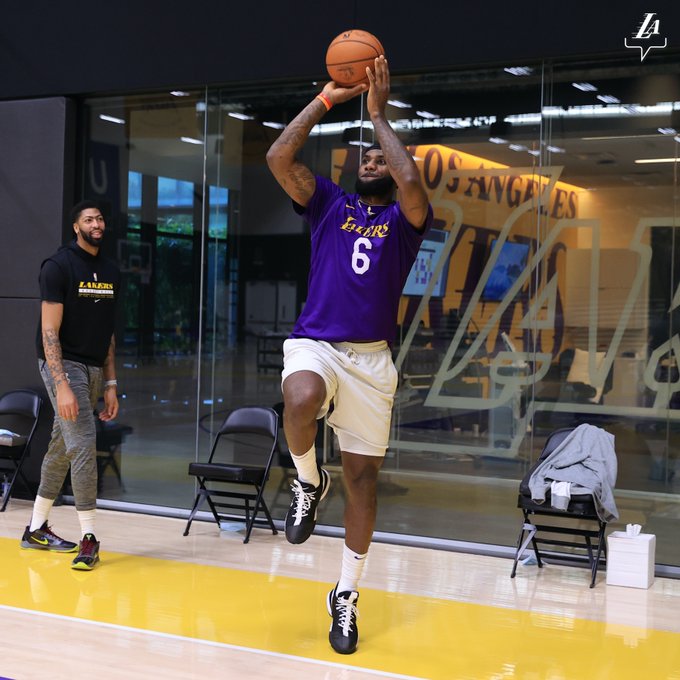 博球00701月16日讯 今日,湖人官方更新推特,晒出一组球员赛前训练照为比赛预热。