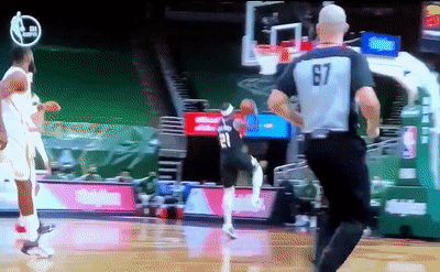 第三节比赛,独行侠球员考利-斯坦在追身防守朱-霍勒迪的快攻时,未能及时收住身体,将霍勒迪撞出场外。