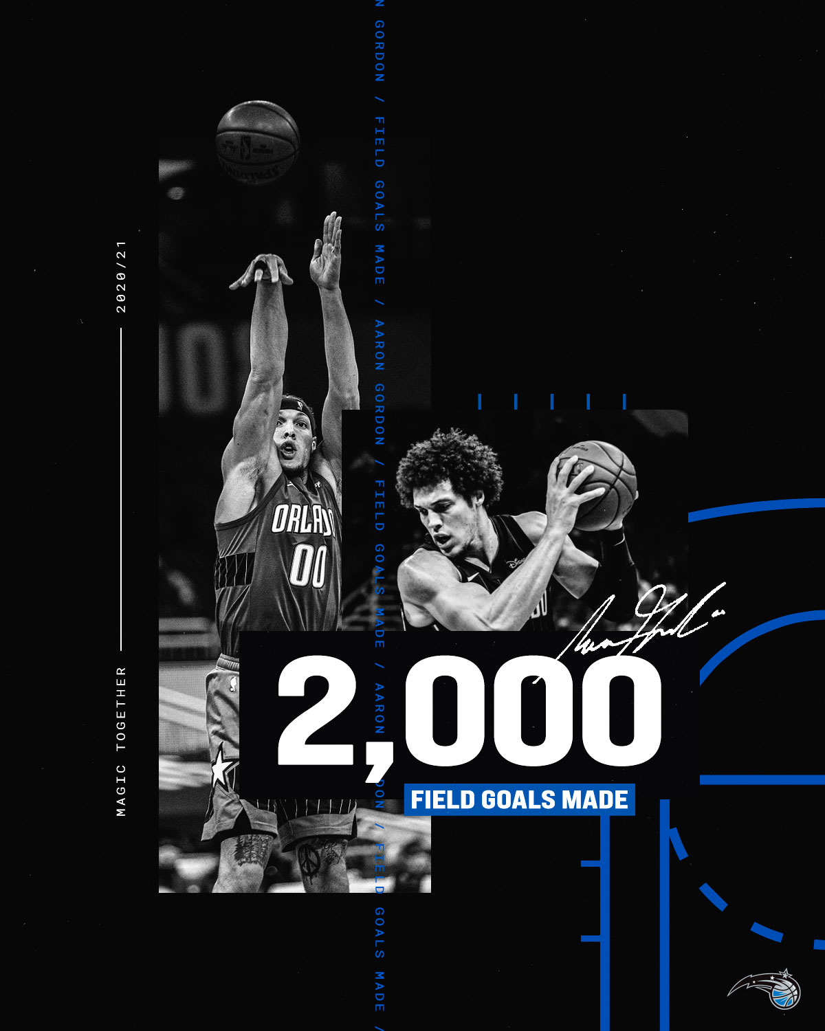 赛后,魔术官方更新推特,晒出一张魔术球员阿龙-戈登的照片庆祝其达到里程碑。