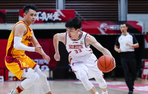 在第3节比赛中,浙江后卫吴前上场9分钟,5投4中砍下10分1篮板4助攻。