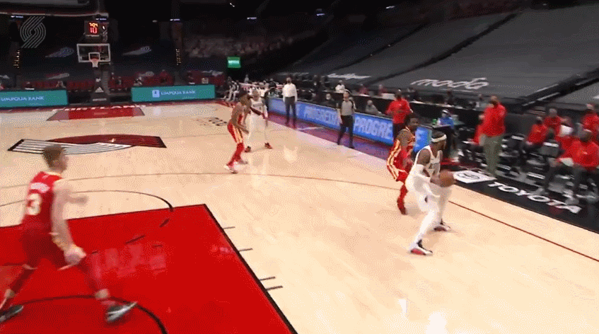 比赛期间,开拓者前锋卡梅罗-安东尼完成了一记漂亮的单打得分。