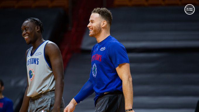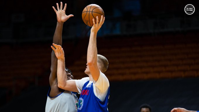 “周末特训。在明日与热火的比赛前保持愉悦的心情。”活塞官方在推文中写道。