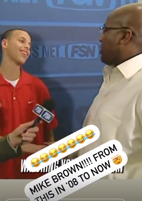 博球00701月18日讯 今日,勇士球员斯蒂芬-库里更新了个人Instagram Story,转发自己进入联盟前与现勇士助教迈克-布朗的旧采访。