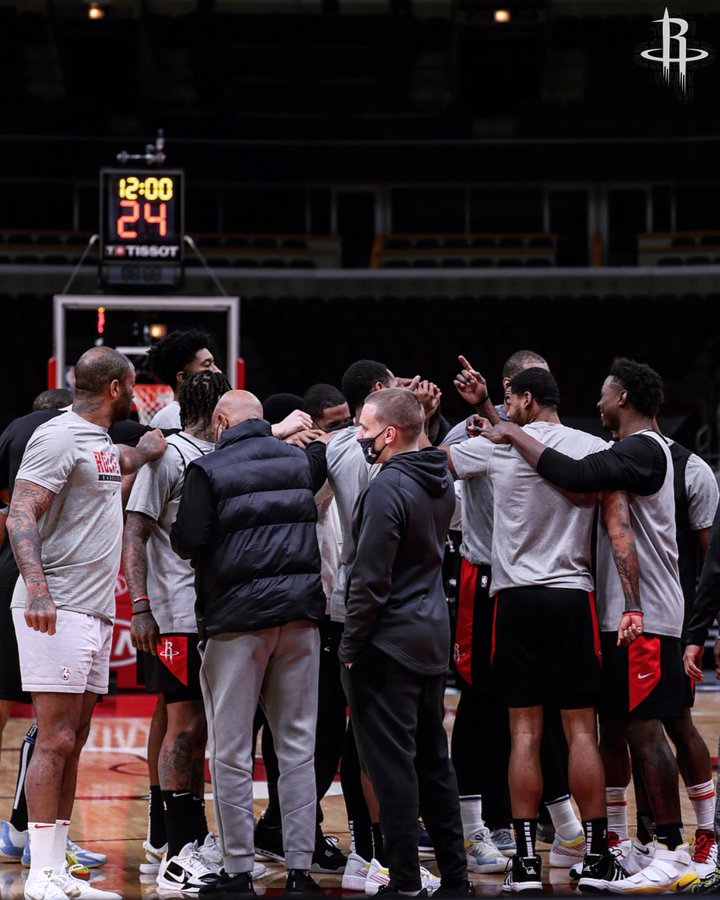 博球00701月19日讯 今日,火箭官方更新推特,晒出一组球员们的训练照为今日的比赛预热。