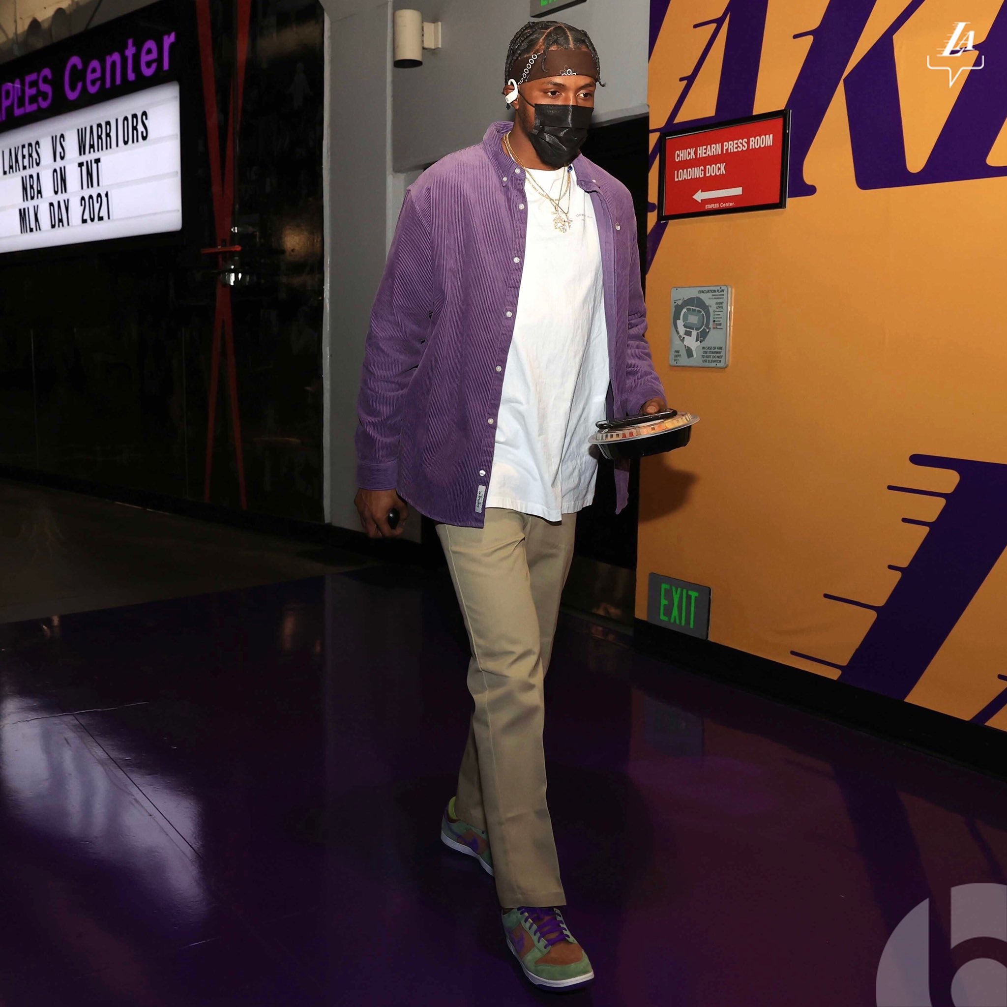 “黄金时段的穿搭。#湖人秀”湖人官推写道。