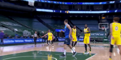 本场比赛第三节末,雄鹿球权,洛佩兹在篮下强起时被湖人球员库兹马大帽,后又被詹姆斯盖帽。