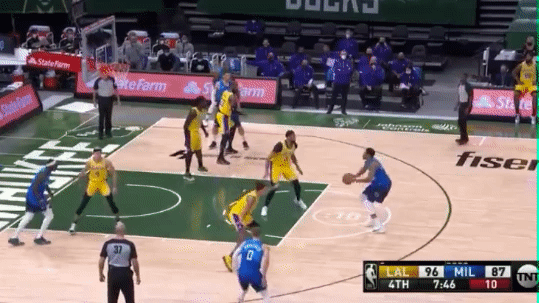 本场比赛第四节,字母哥扬尼斯-阿德托昆博面对安东尼-戴维斯的防守投出了三不沾。