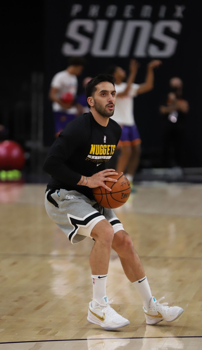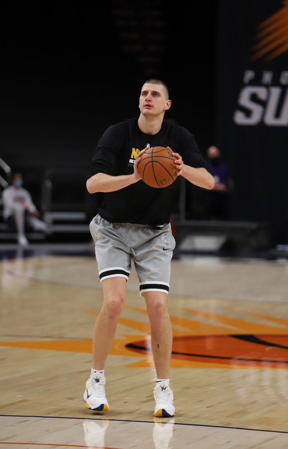 博球00701月23日讯 今日,掘金官方更新推特,晒出一组掘金球员尼古拉-约基奇和法昆多-坎帕佐的赛前热身照与球迷分享。