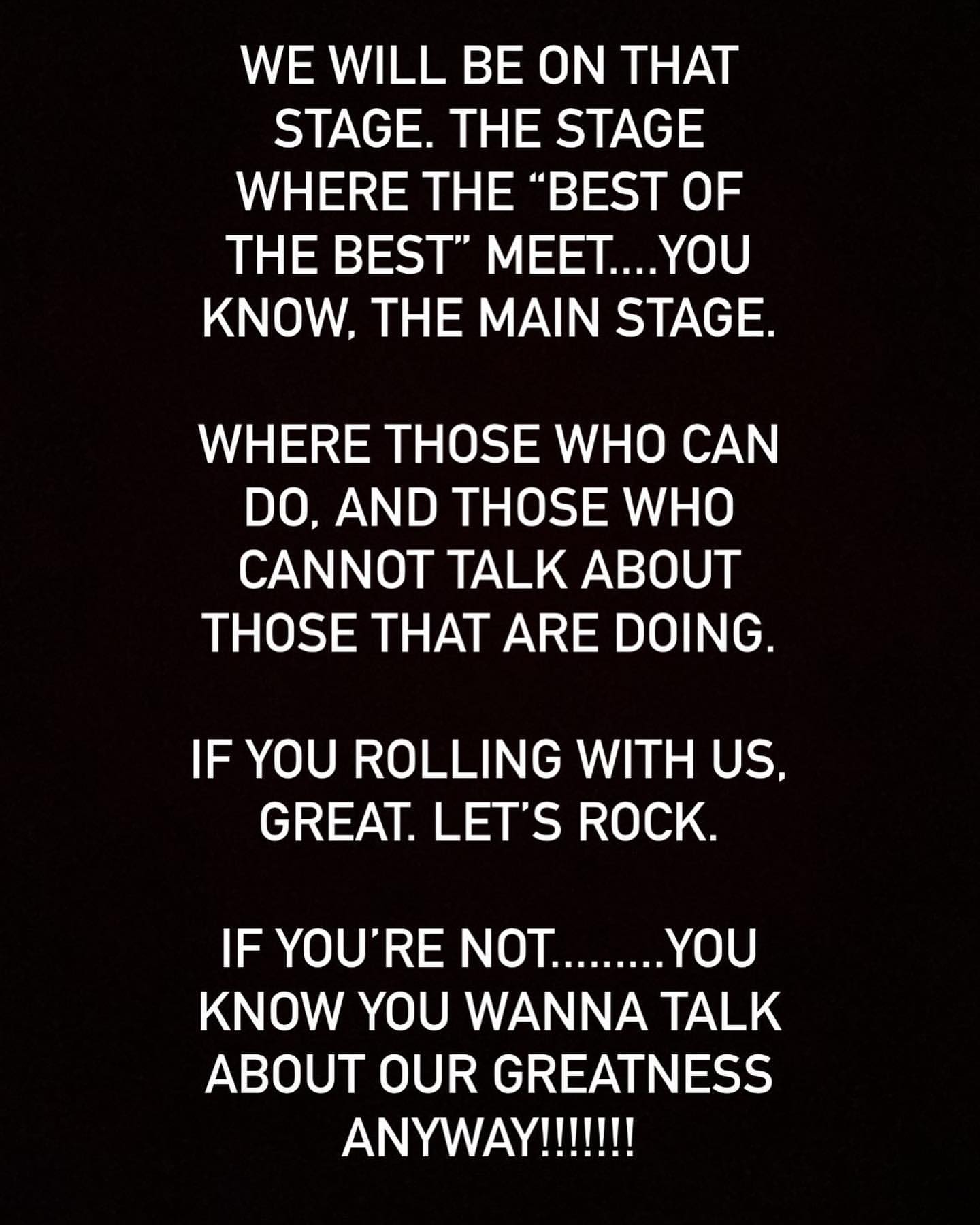 “我们将会站上那个舞台。那个‘精英中的精英’相遇的舞台……你懂的,主舞台。