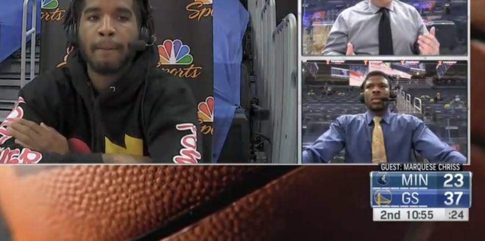 博球00701月26日讯 今日,勇士主场迎战森林狼。半场结束,勇士68-55领先。本场比赛,勇士球员马基斯-克里斯作为嘉宾参与解说比赛。