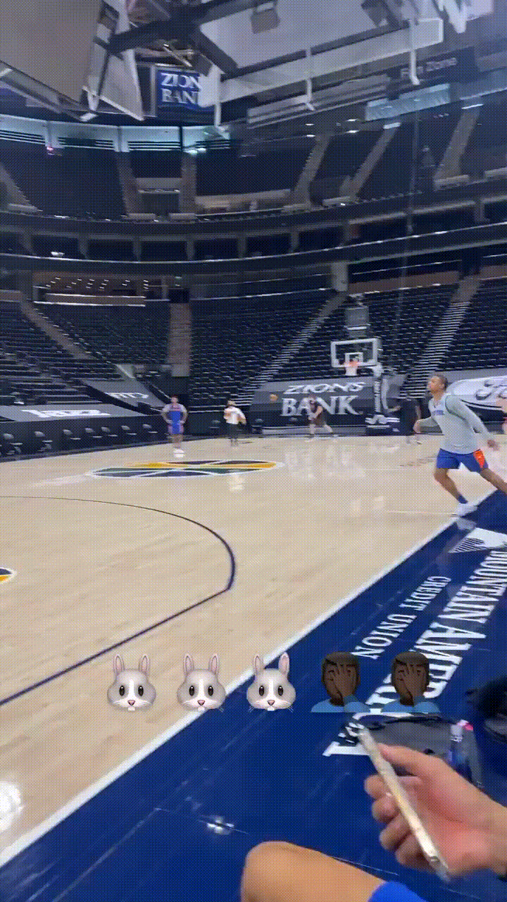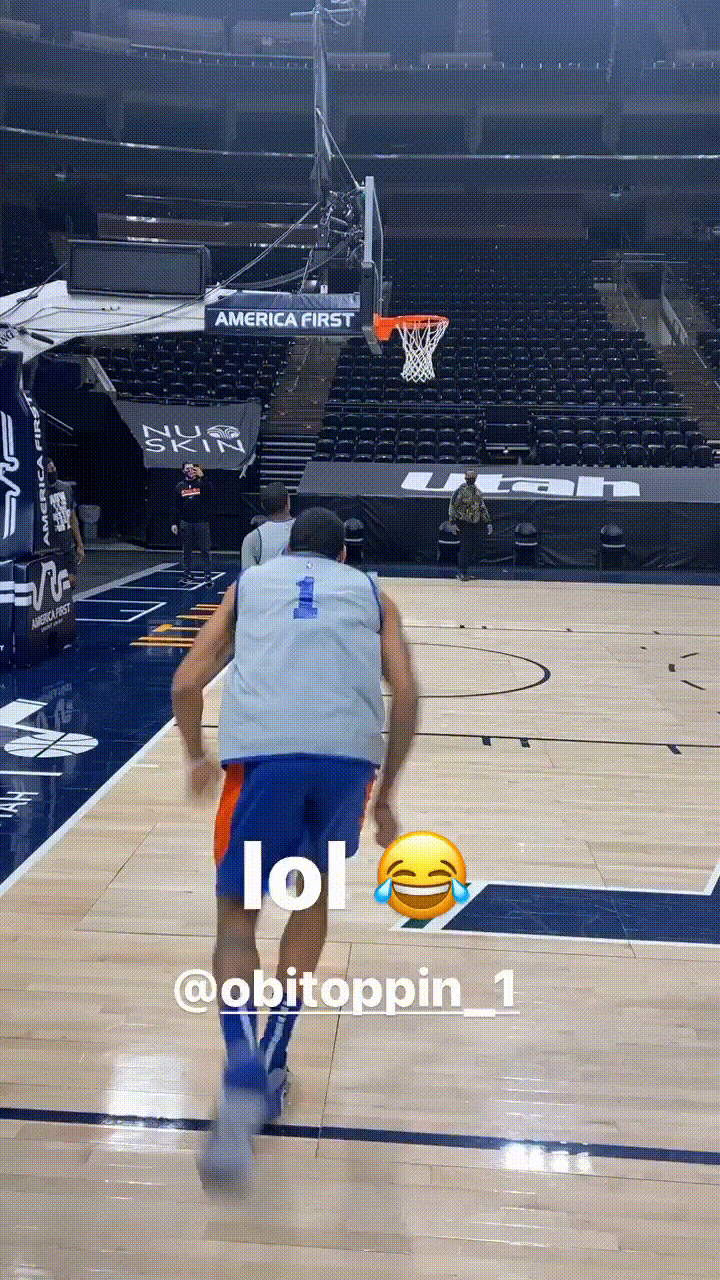 博球00701月26日讯 今日,尼克斯前锋朱利叶斯-兰德尔更新Instagram Story,晒出队友奥比-托平在训练中秀扣篮的片段。