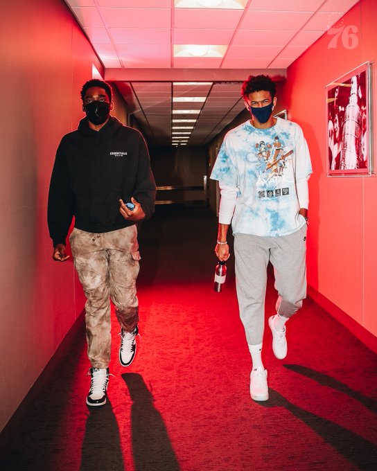 博球00701月28日讯 今日,76人官方更新推特,晒出一组球员们的入场照为比赛预热。