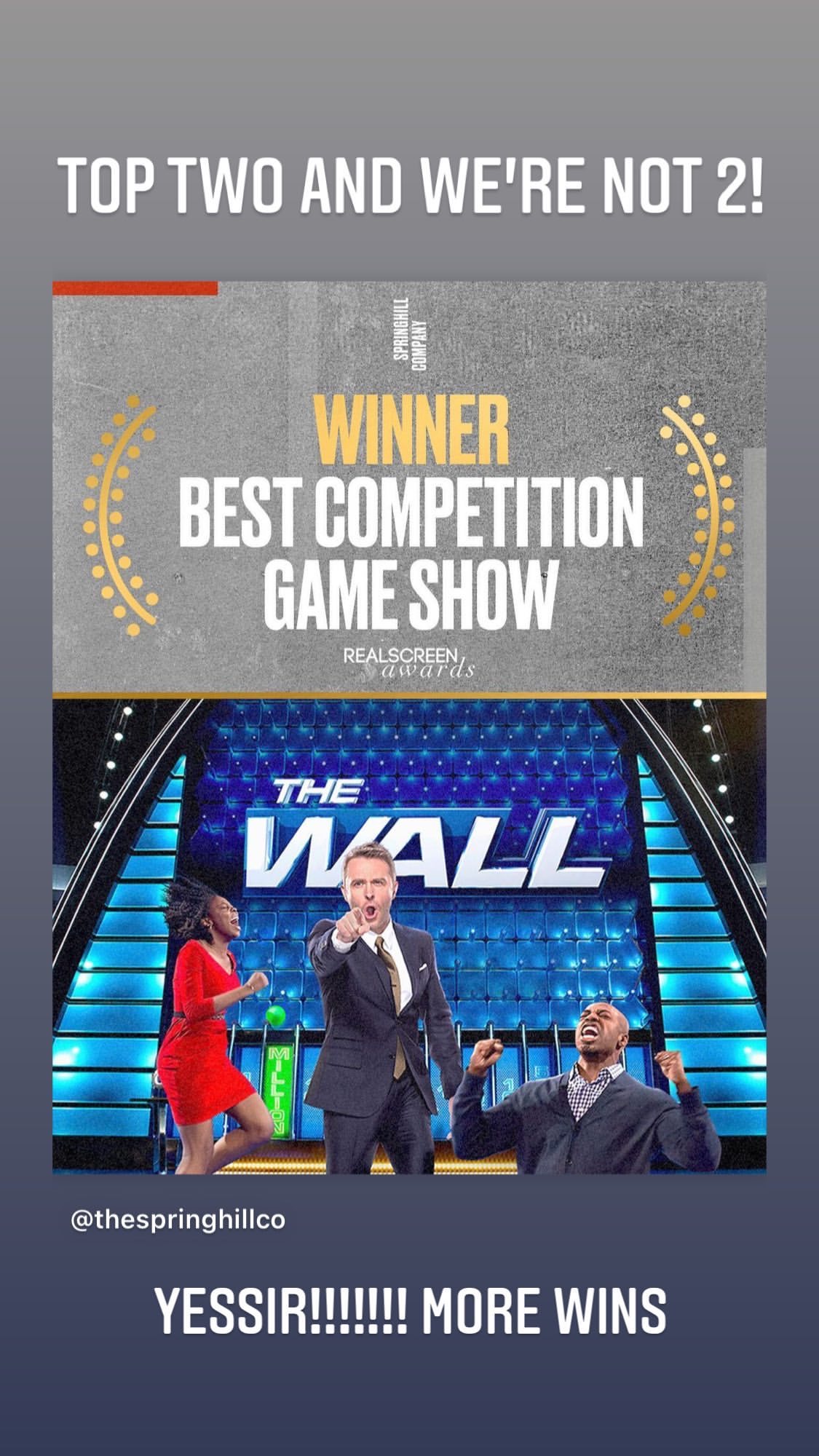 由詹姆斯担任制片人、詹姆斯旗下娱乐公司SpringHill出品的《The Wall》荣获Real Screen奖的年度最佳竞赛节目奖。