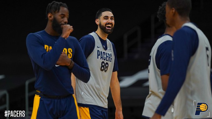 “训练日的美好氛围。”步行者官方在推文中写道。