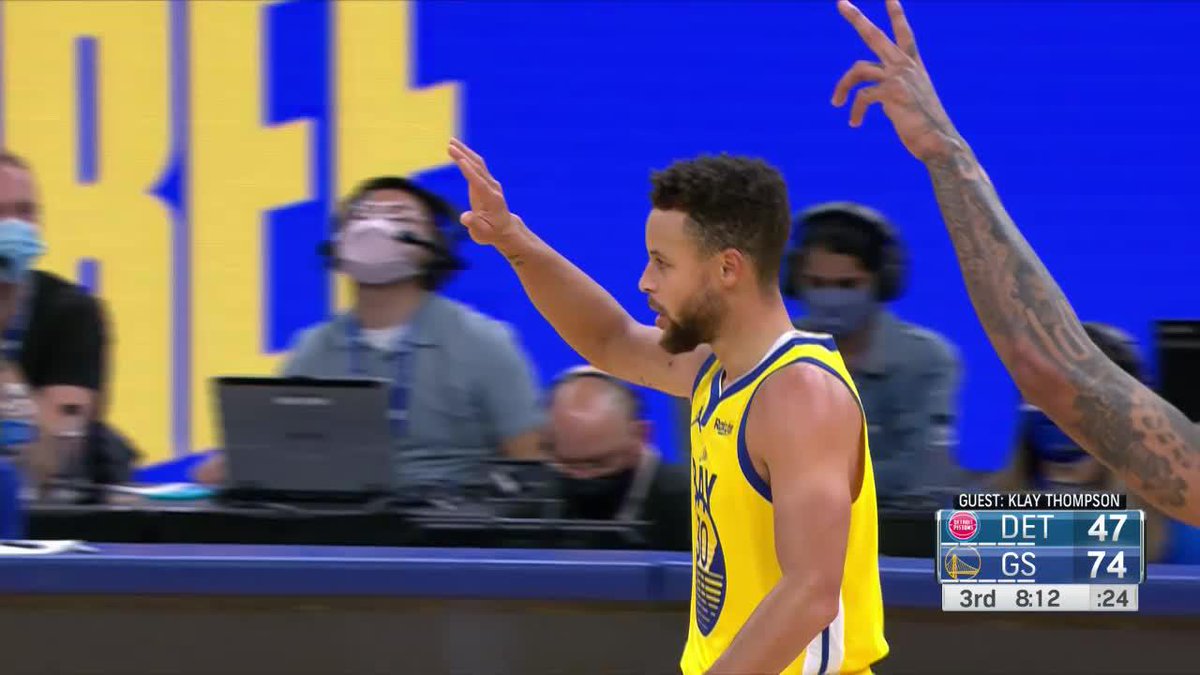 值得一提的是,在库里出手后,命中这记三分之前,本场的特邀解说员勇士后卫克莱-汤普森就说:“斯蒂芬这球进了。”