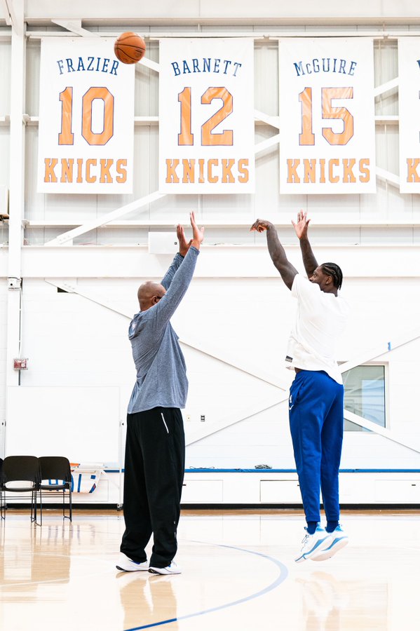 博球00701月31日讯 今日,尼克斯官方更新推特,晒出一组球员们的训练照与球迷分享。