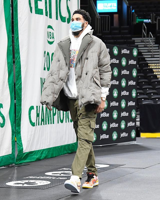 博球00702月01日讯 今日,凯尔特人官方更新Instagram,晒出球员在昨日比赛开始前入场的穿搭。