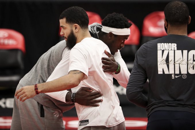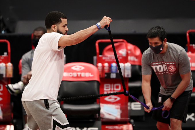 “呼吸,拉伸,鼓励,战斗。”猛龙官方在推文中写道。