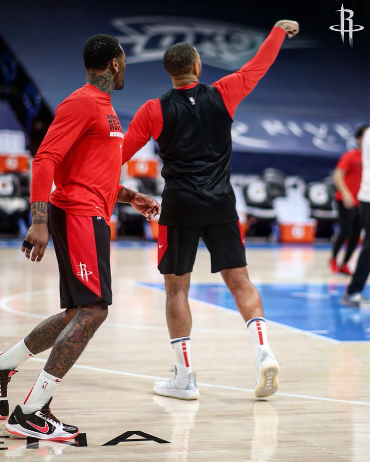 “早上训练时的完美氛围。”火箭官方在推文中写道。