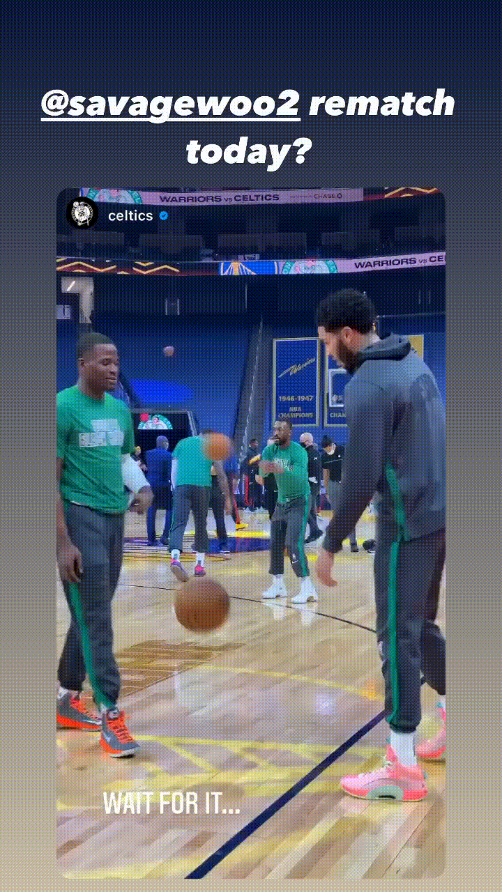 博球00702月04日讯 今日,凯尔特人球员杰森-塔特姆更新个人Instagram快拍,转发凯尔特人官方发布的自己与队友贾文特-格林在昨日赛前单挑的片段。