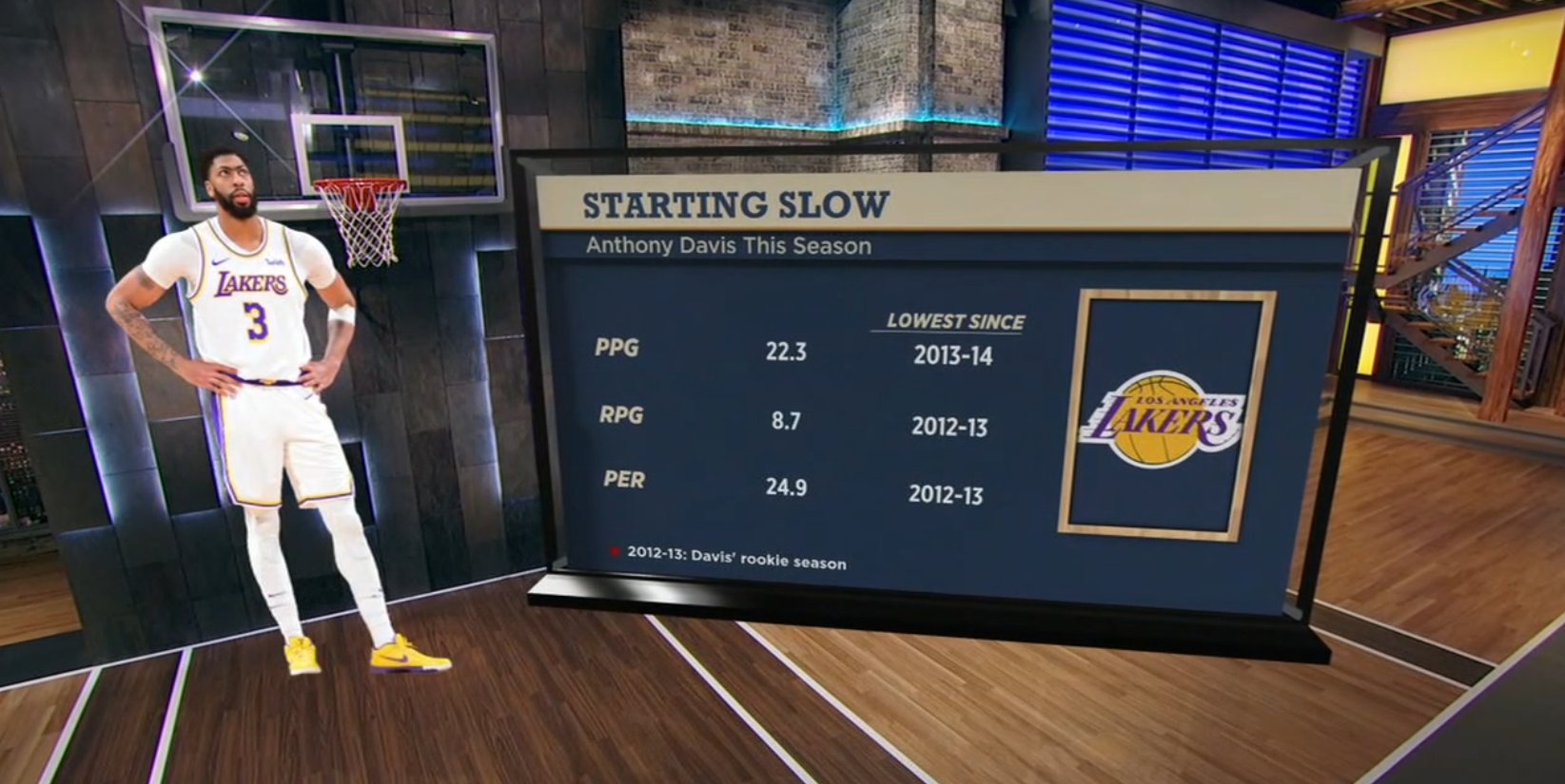 赛季至今,戴维斯场均22.3分的得分数据创2013-14赛季以来个人新低;场均8.7篮板及24.9的PER值均创2012-13赛季以来的个人新低;70.9%的罚球命中率创生涯新低。