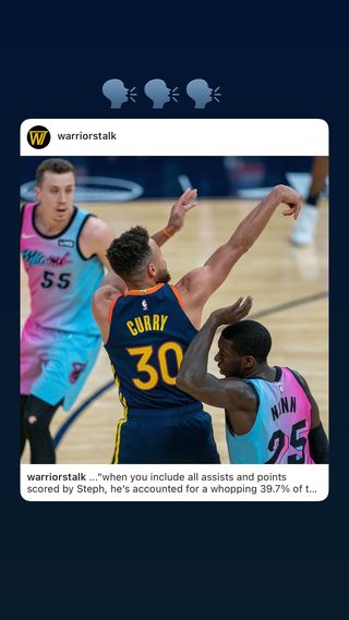博球00702月20日讯 今日,一名勇士博主在Instagram上发布了勇士后卫斯蒂芬-库里的一项数据,据统计,算上得分和助攻,库里参与了勇士39.7%的得分。