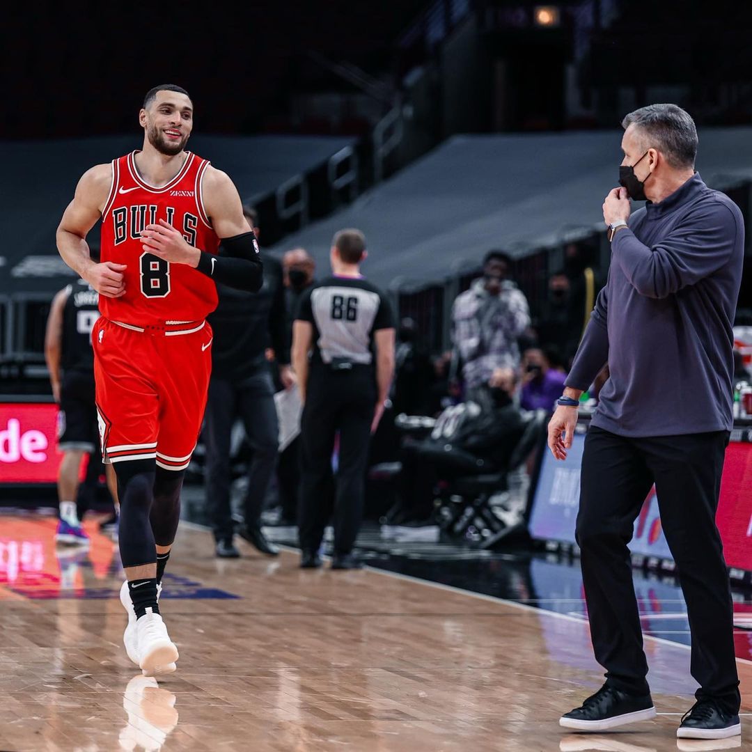 赛后,公牛球员扎克-拉文更新了个人Ins,晒出今日赛场照,并配文:向下一个进发✅