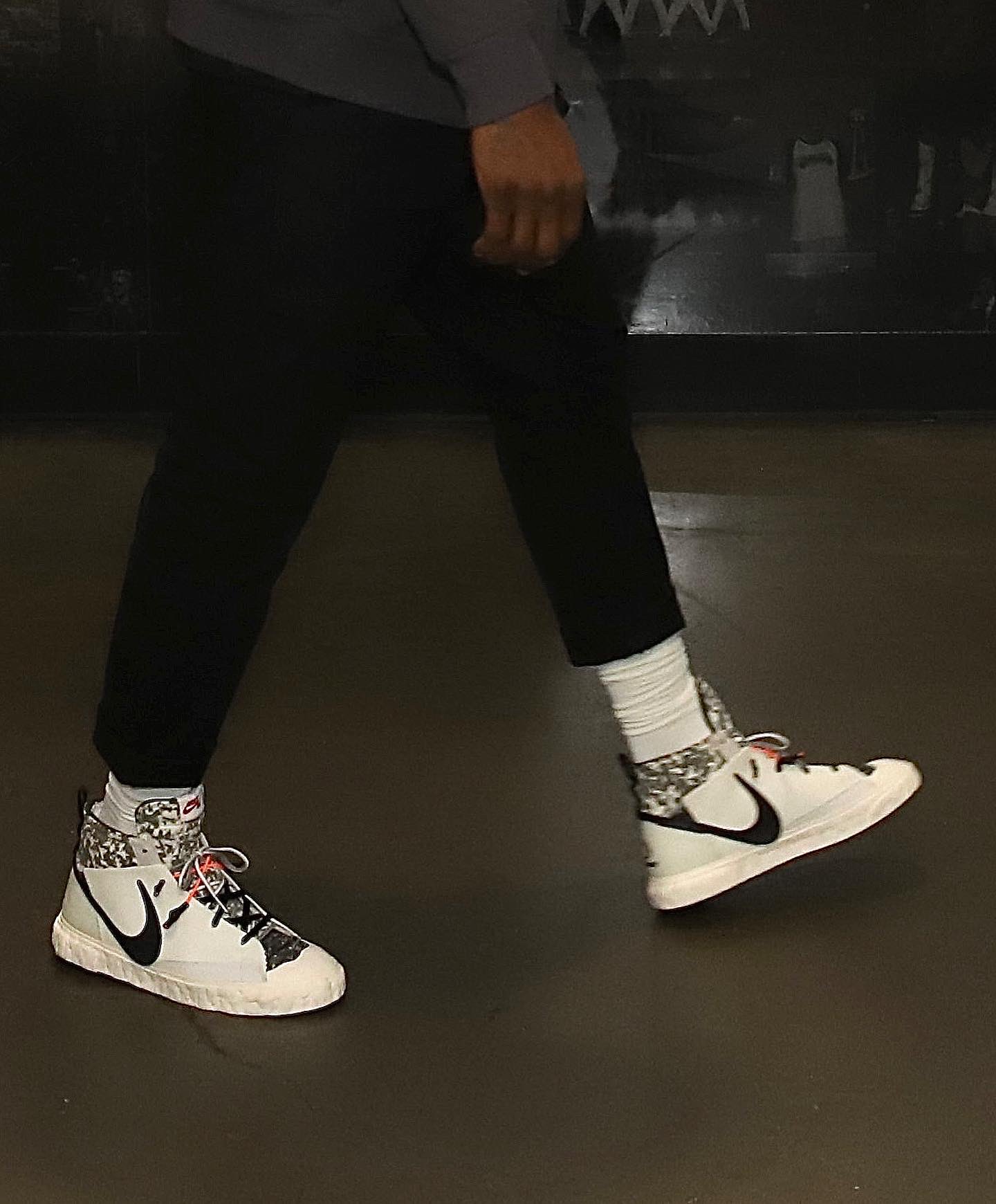 “勒布朗-詹姆斯穿着READYMADE Nike Blazer中帮球鞋备战今日由NBA TV转播的比赛!”NBA球鞋官方推特写道。