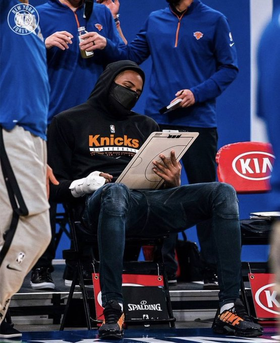 博球00702月23日讯 今天,尼克斯中锋米切尔-罗宾逊更新了推特,晒出了自己在场边手拿战术板的照片。