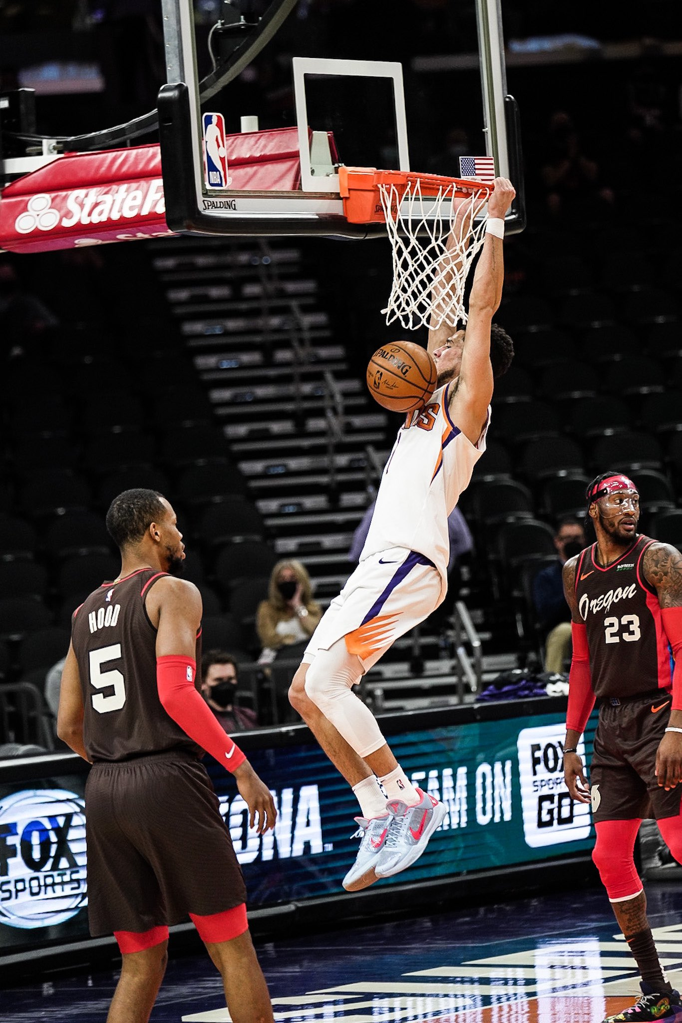 博球00702月23日讯 太阳和开拓者的比赛正在进行中。比赛期间,太阳后卫德文-布克完成了一记精彩扣篮,目前 得到28分3篮板4助攻。