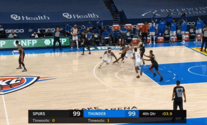 最后时刻,雷霆球员吕冈茨-多尔特接到队友传球,在底角命中压哨三分,雷霆绝杀马刺。