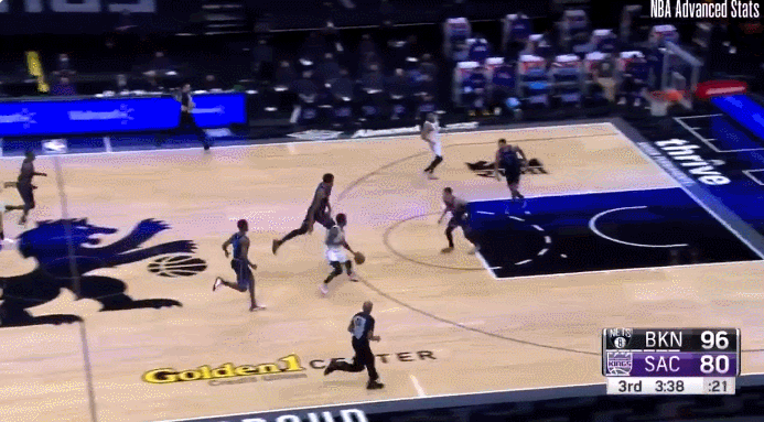哈利伯顿回忆道:“在一次篮网的快攻期间,我要防守凯里-欧文的单打,然后凯里突然出手三分,那球当时还没进呢,詹姆斯-哈登就问他:‘凯里,我能不能跳这支舞?’”