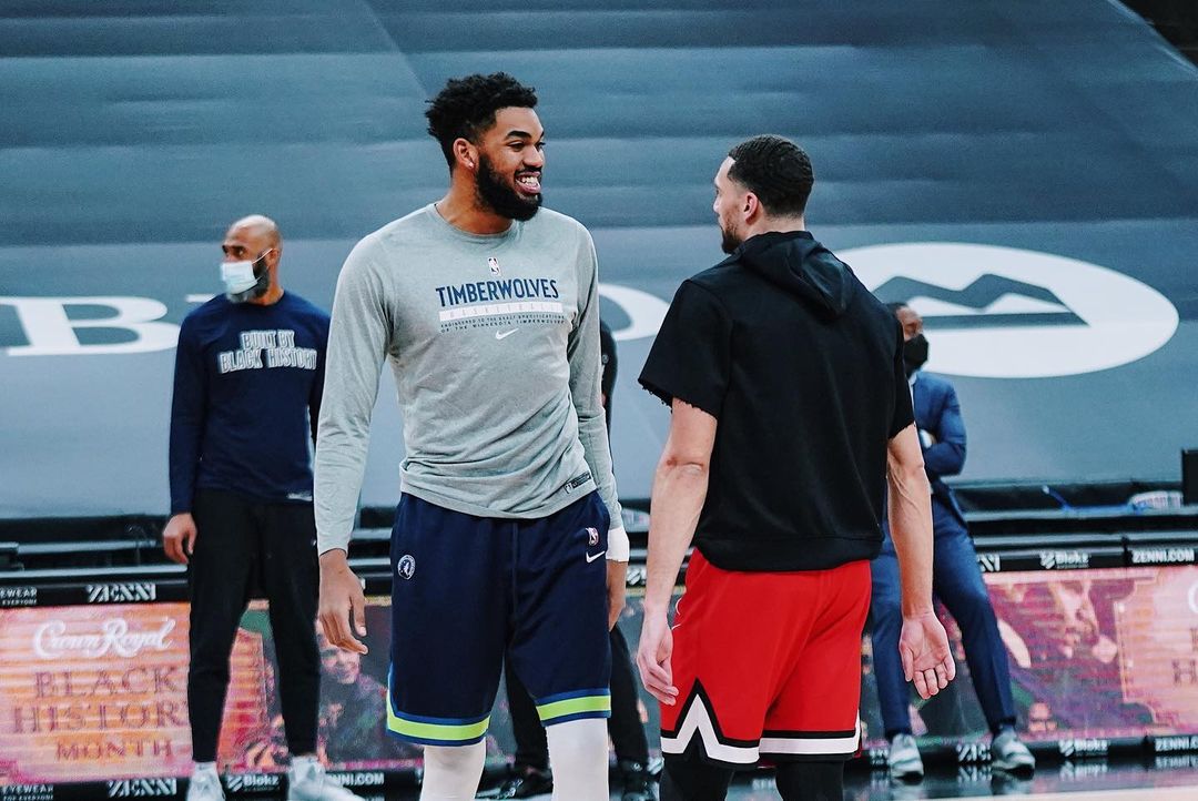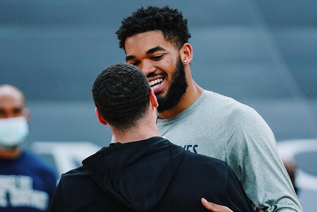 博球00702月26日讯 今日,森林狼球员卡尔-安东尼-唐斯更新了Instagram Story,晒出自己与前队友、公牛球员扎克-拉文击掌的照片,祝贺他入选全明星。