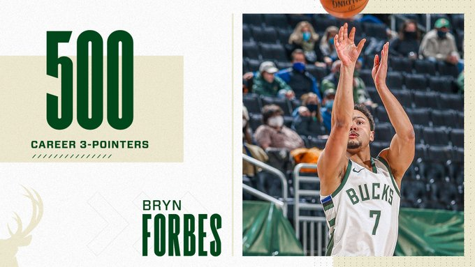 雄鹿官推随后也发文祝贺:“恭喜福布斯投中生涯第500记三分!”