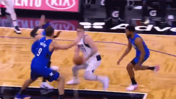 比赛期间,独行侠后卫卢卡-东契奇完成了一记精彩的不看人妙传,助攻队友上篮得分。
