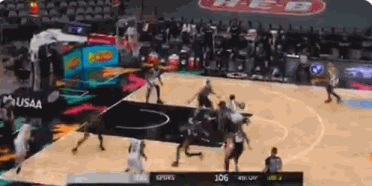 第四节倒数第二攻前篮网108-106领先,随后篮网没有能够命中。球权转换,马刺球员德章泰-默里至前场险些失误,慌忙中拔起就投压哨命中绝平球。