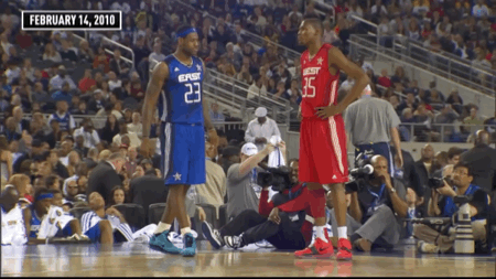 在选秀开始之前,转播方TNTN台回放了2010年全明星赛中詹姆斯与杜兰特的赛场互动画面。詹姆斯当时与杜兰特击掌致意,并说道:“享受你的第一场全明星赛吧,兄弟。你感觉怎样?这是你的第一场全明星赛,你就得到了10万8000观众来这里看你打球的待遇。”