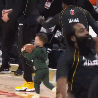 美媒Bleacher Report发布了一组全明星赛热身时的有爱瞬间,篮网后卫凯里-欧文在热身时,与凯尔特人前锋杰森-塔特姆的儿子Deuce追逐打闹。