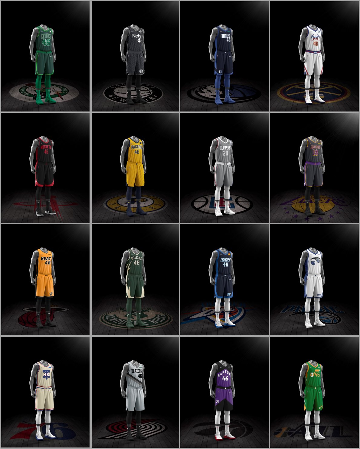 这16件特别版球衣均带有银色装饰,其中上赛季总冠军湖人的球衣带有金色装饰。