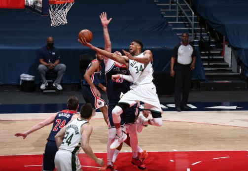 目前奇才27-42落后雄鹿,雄鹿这边,扬尼斯-阿德托昆博已经得到9分5篮板5助攻。