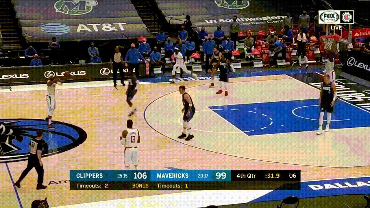但在比赛最后时刻,乔治面对卢卡-东契奇命中三分帮助球队锁定胜局。
