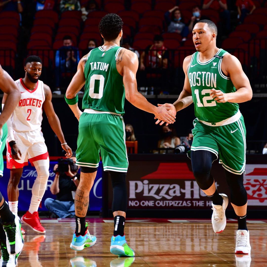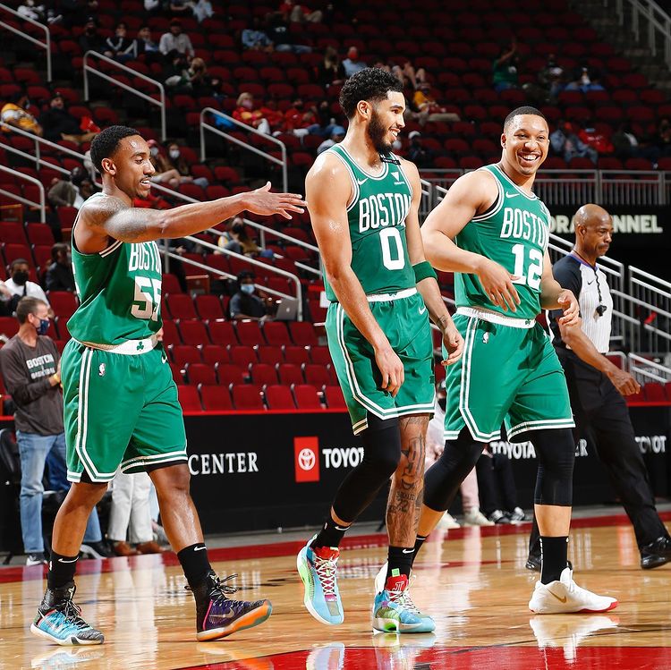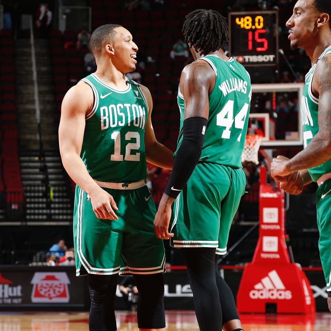 博球00703月16日讯 今日,凯尔特人球员格兰特-威廉姆斯更新Ins,晒出一组自己与队友的赛场合影与球迷分享。