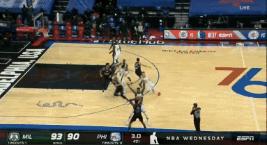 博球00703月18日讯 今日76人主场迎战雄鹿,比赛进行到第四节最后时刻,76人90-93落后雄鹿。