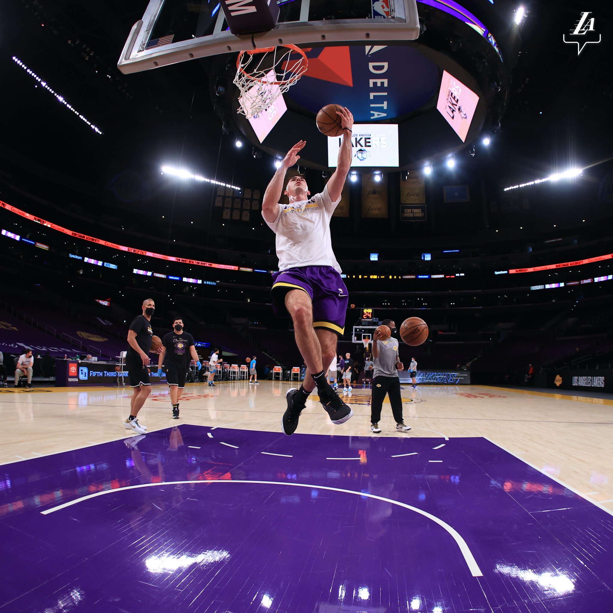 博球00703月19日讯 今日,湖人官方推特发布了后卫亚历克斯-卡鲁索的赛前热身照。