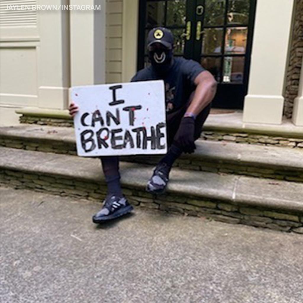 快速比分5月31日讯 今日,凯尔特人前锋杰伦-布朗前往亚特兰大参加抗议游行活动,呼吁消除种族主义和暴力执法。布朗在个人Instagram上发布了自己参加游行的照片。