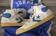 另外一双是乔丹在北卡罗来纳大学期间穿过的球鞋,拍出了95176美元。